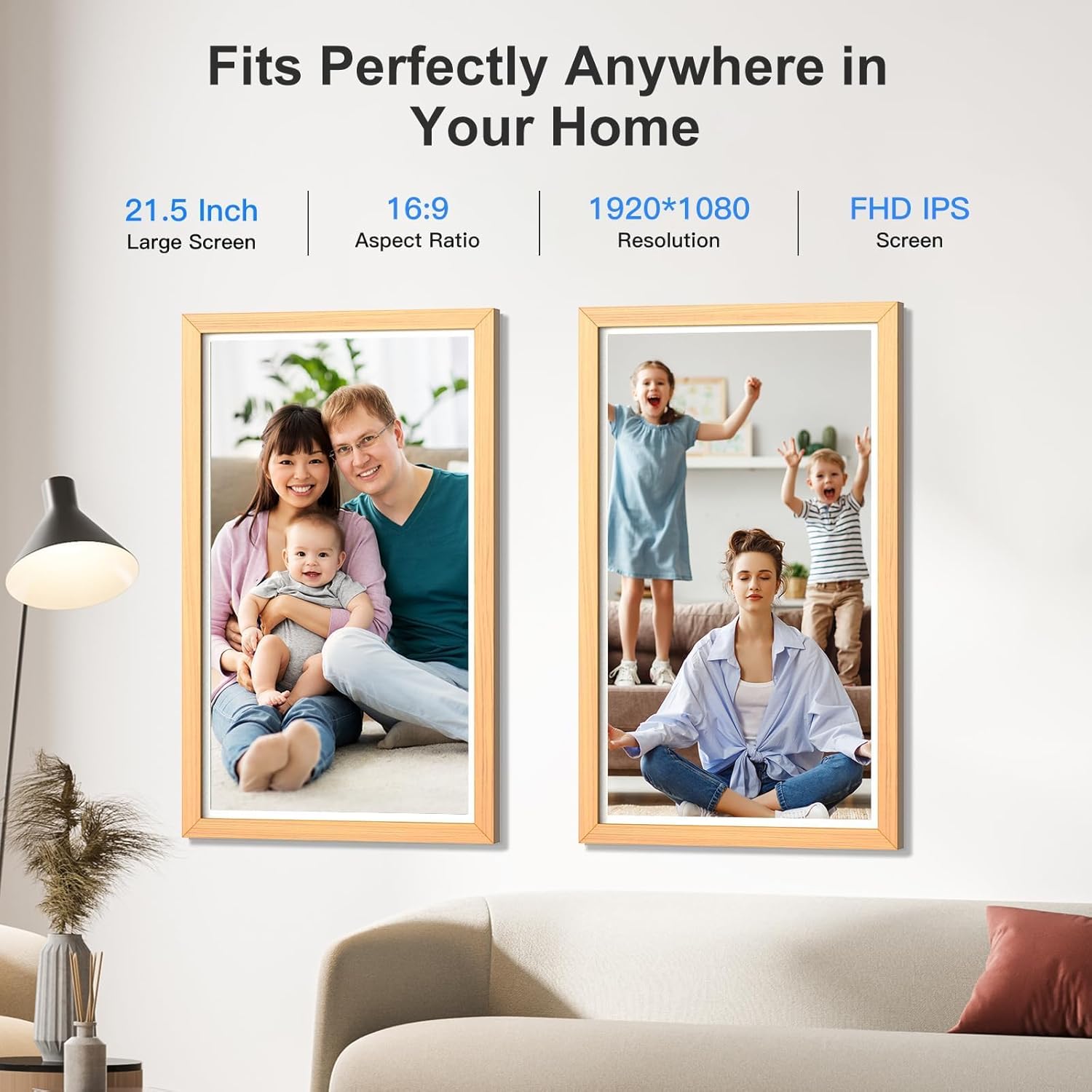 21.5-Inch Dual Wi-Fi Digital Picture Frame – 1080P Video, App & Email Sharing, 32GB Storage, Unlimited Cloud, Wall-Mount Smart Display