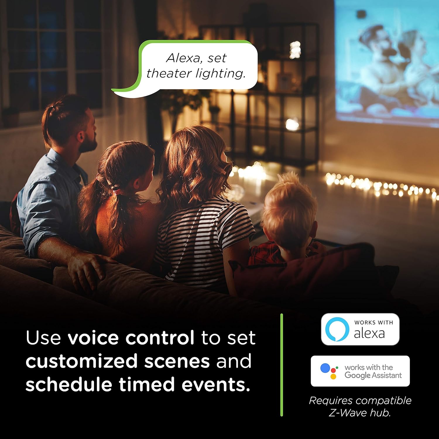 - Voice control - Enjoy the convenience of voice control with Google Assistant or Amazon Alexa when connected through a compatible Z-Wave hub.