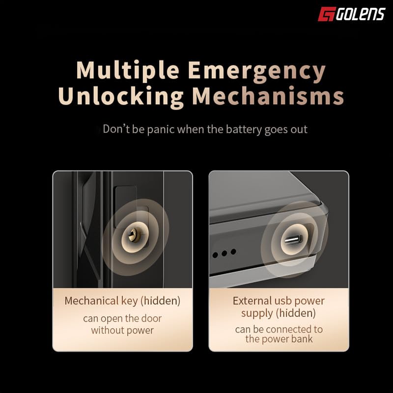 - RFID Card Access: The Golens X57 also supports RFID card access. Registered users can utilize RFID cards or key fobs to unlock the door with a simple tap or swipe.