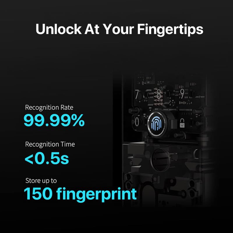 - SMART FINGERPRINT TO UNLOCK - No need to enter password to unlock, bring you more convenient life, Advanced biometric fingerprint technology, the lock can recognize 100 users and the recognition speed is 0.3s.