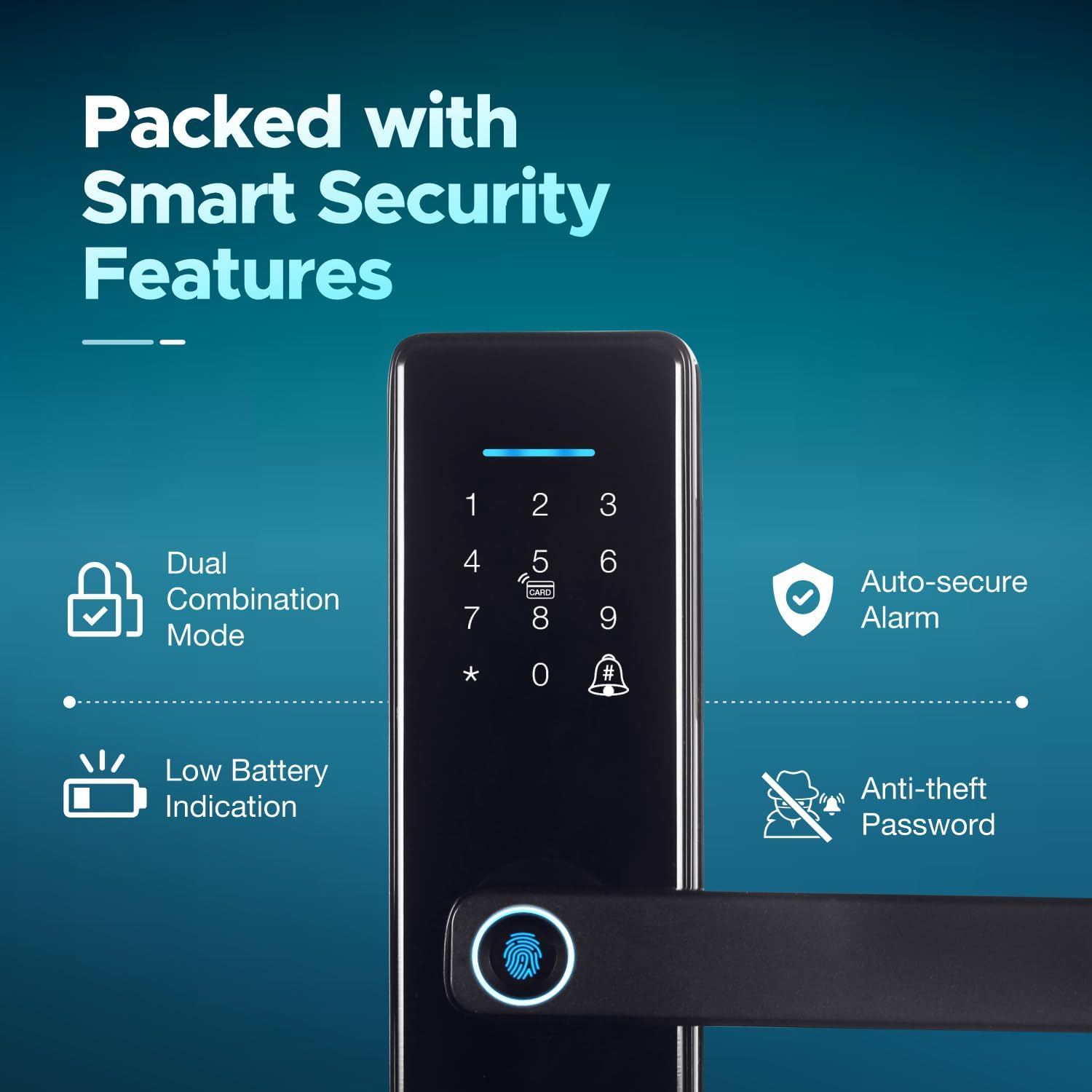 - Anti-theft Features: Includes an Anti-theft Password that uses a fake password to deter unauthorised entry. Smart Freeze Mode suspends access after a few wrong attempts and the Auto-secure Alarm alerts users about unauthorised access attempts.