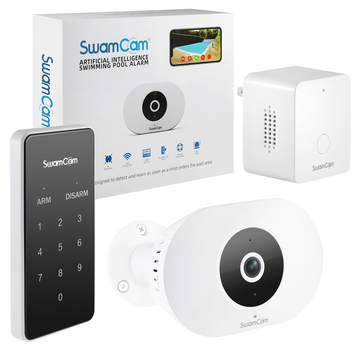 SwamCam WiFi Pool Alarm Camera – ASTM F2208 Certified Smart Pool Safety System | Real-Time Alerts, Remote Viewing, Wi-Fi Repeater – For Inground & Above Ground Pools