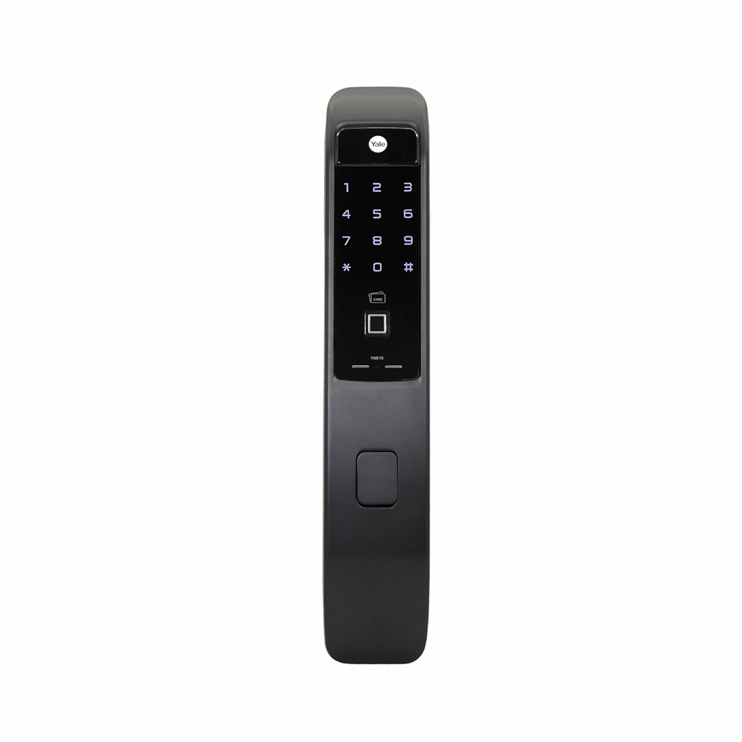 Yale YMI 70 Pull Smart Digital Door Lock – Biometric, PIN, RFID, Mechanical Key | Push-Pull Access | Fits 40mm–100mm Wooden Doors | Black | 3-Year Warranty